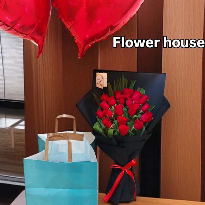 1. Fresh red roses bouquet (medium size)