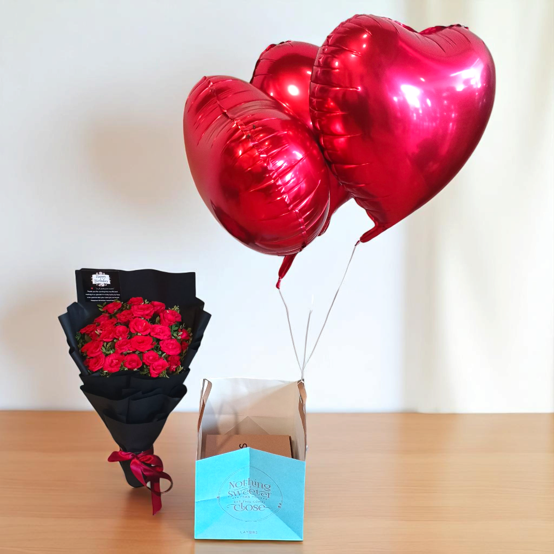This arrangement is perfect for a variety of occasions, including birthdays, anniversaries, graduations, and more. Its unique combination of fresh flowers, delicious cake, and playful balloons ensures a memorable experience for the recipient, making it an ideal choice for anyone looking to make a lasting impression. With its beauty, taste, and sentiment, this arrangement is sure to bring joy and happiness to anyone’s heart.